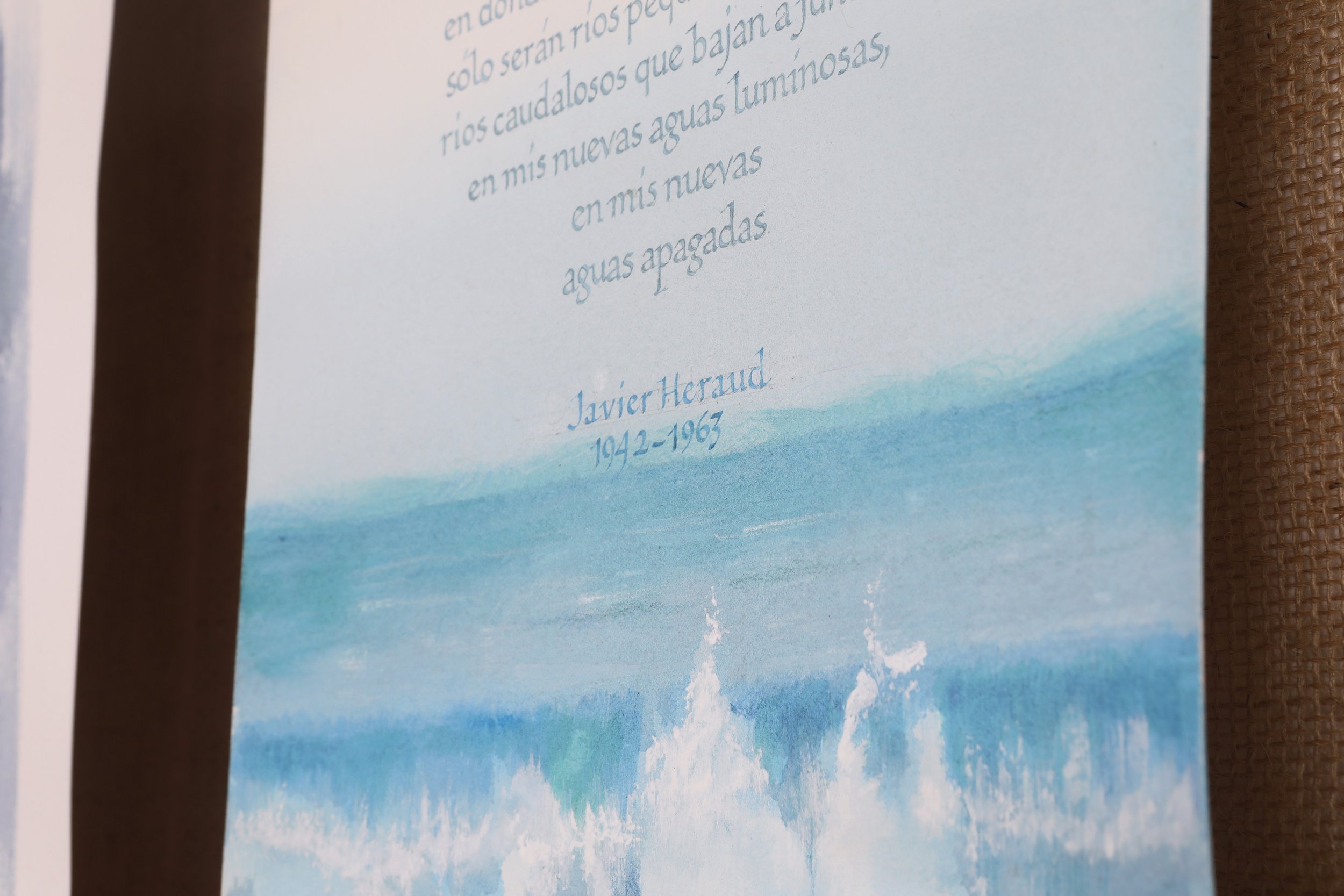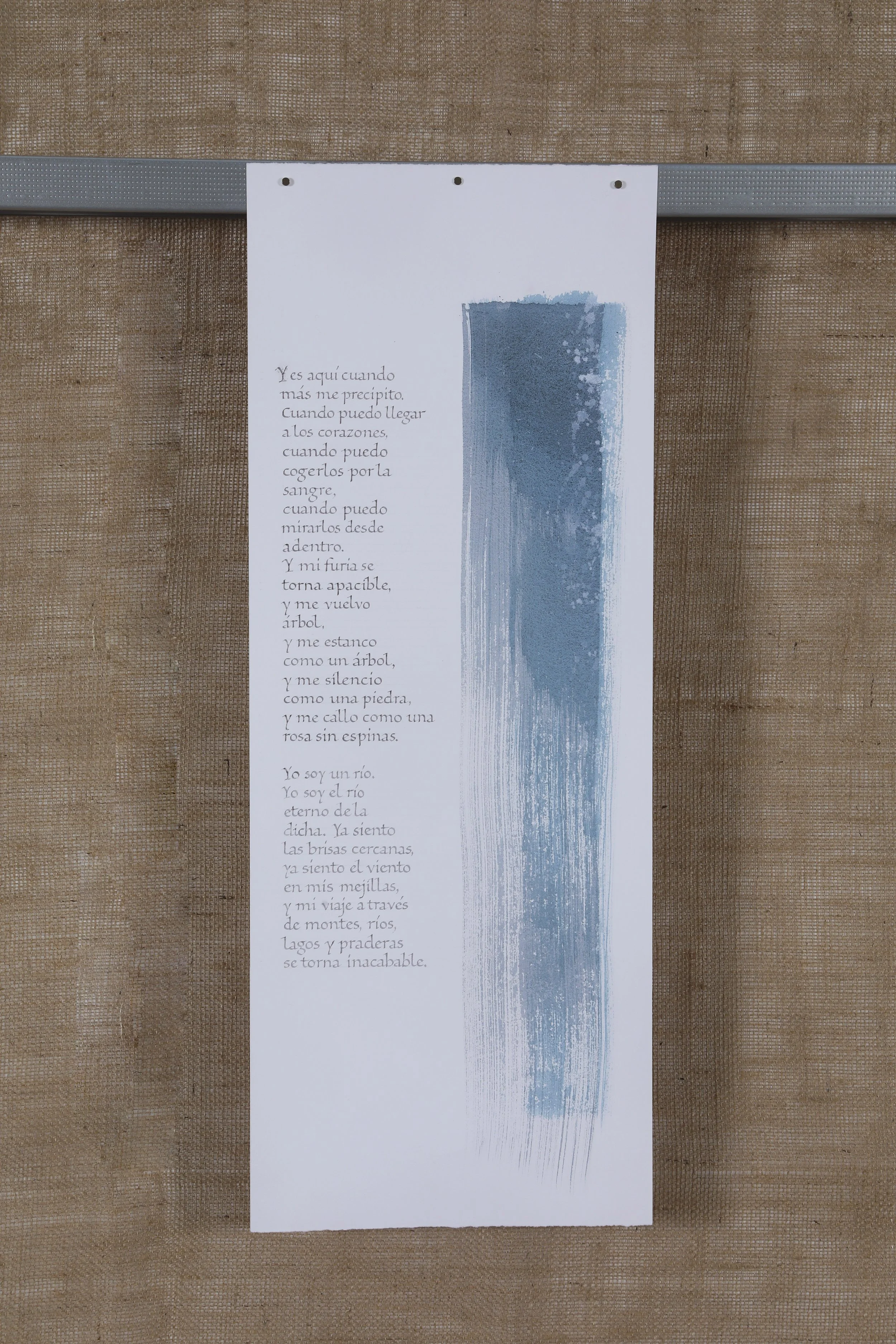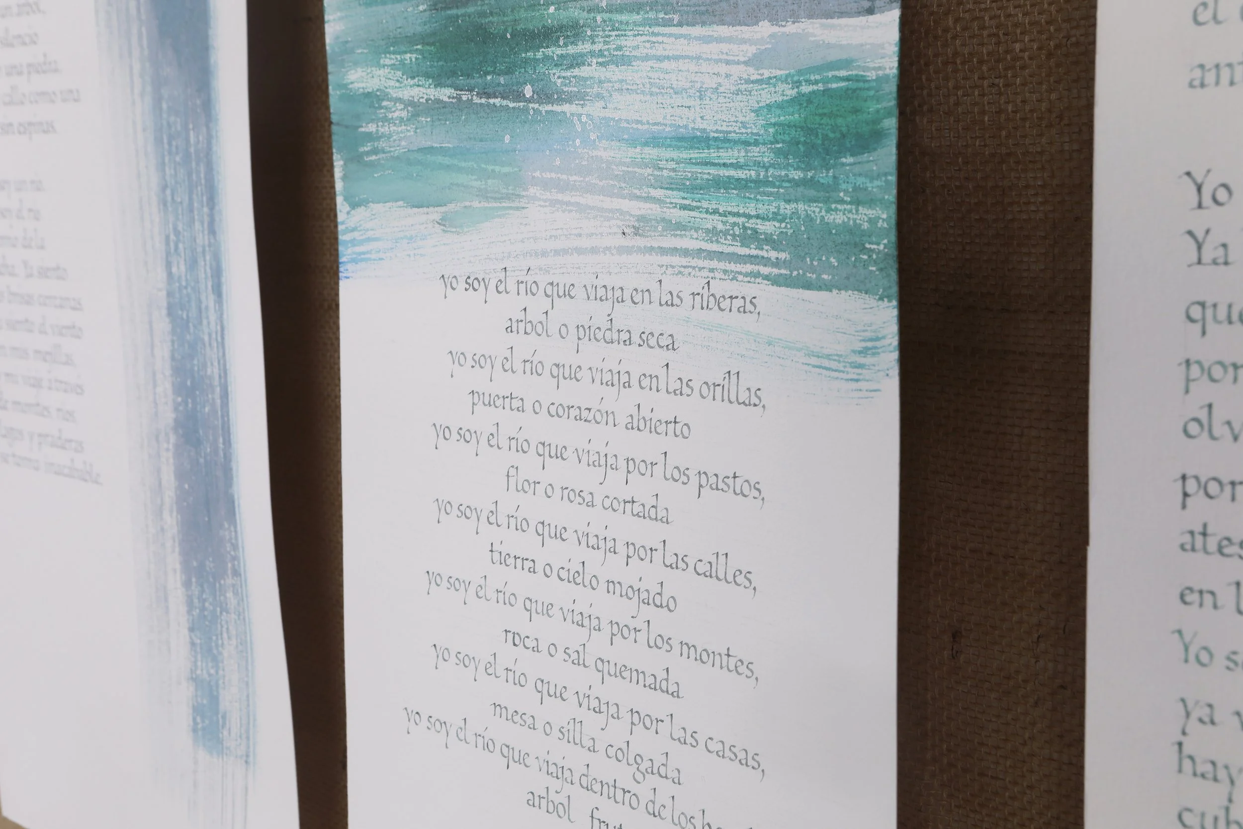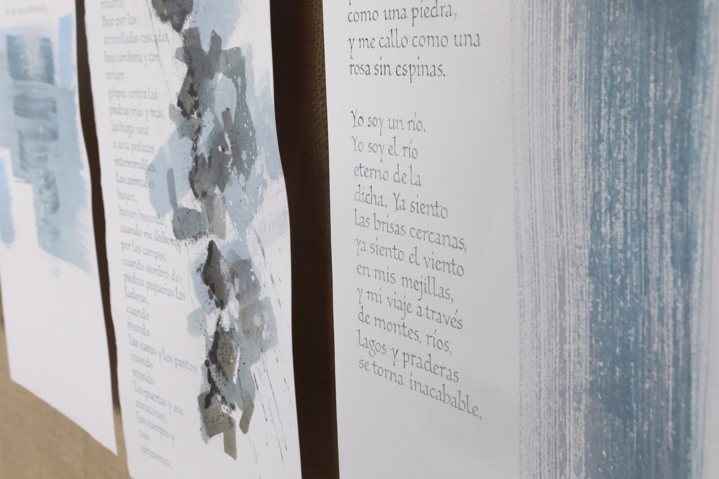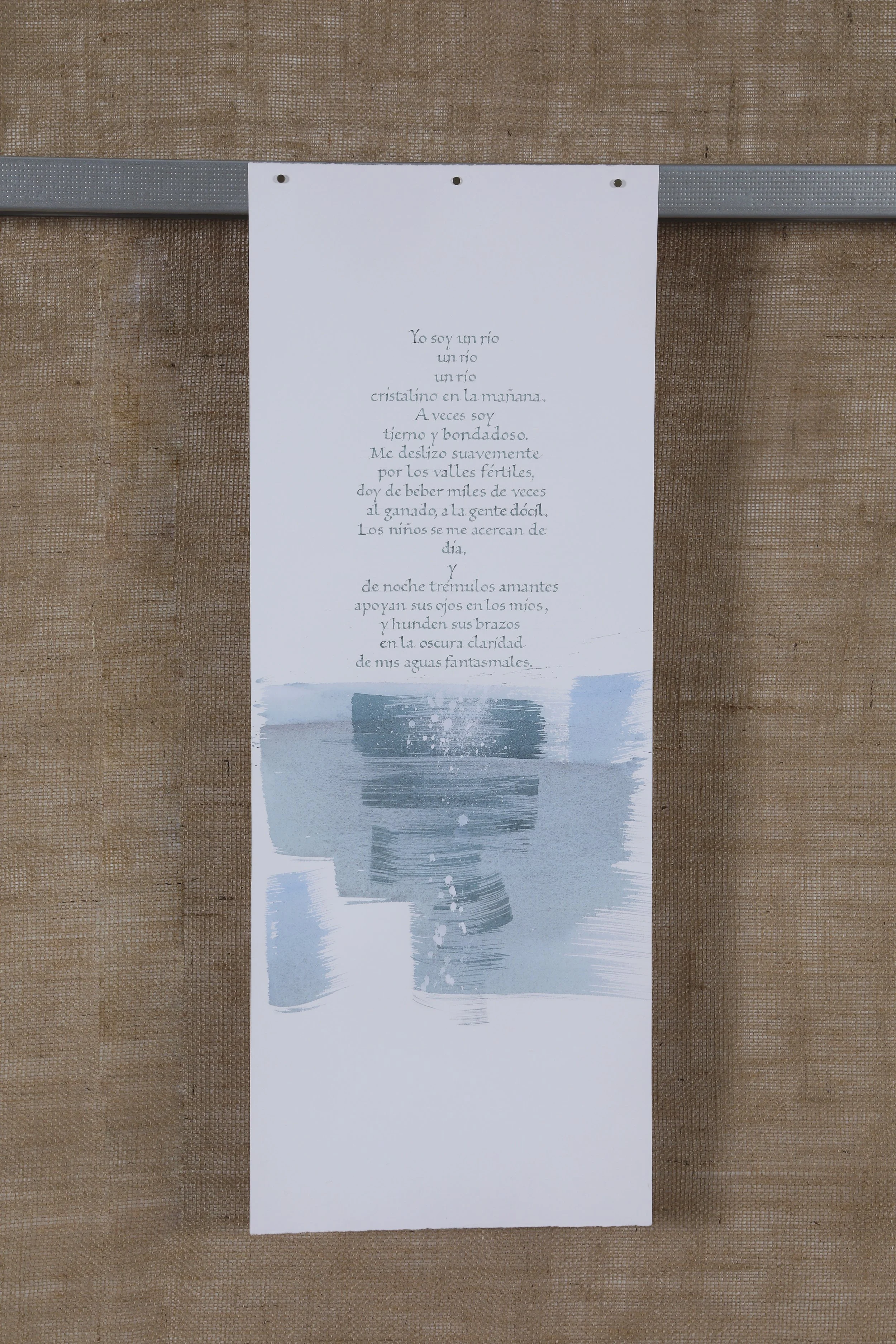 Seven panels written in Foundational calligraphy and illustrated on Hahnemühle paper. The text is taken from the Spanish poem El Río by Javier Heraud (1934–1963), reflecting the lyrical flow and contemplative imagery of the original work.